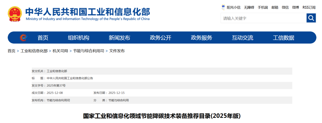 國家工業(yè)和信息化領域節(jié)能降碳技術裝備推薦目錄(2025年版)