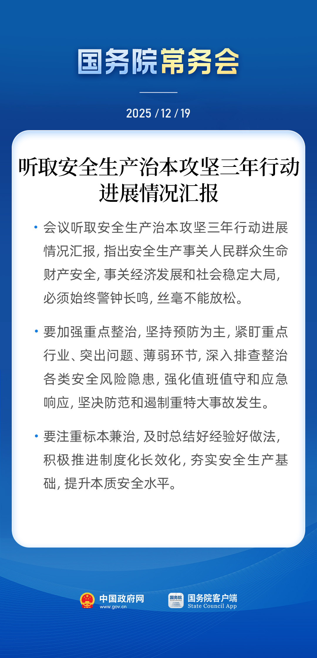 國(guó)務(wù)院常務(wù)會(huì)聽取安全生產(chǎn)治本攻堅(jiān)三年行動(dòng)進(jìn)展情況匯報(bào)