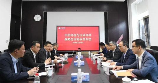 3月26日,寶武環(huán)科與中信環(huán)境投資集團有限公司(簡稱“中信環(huán)境”)在北京正式簽署戰(zhàn)略合作協(xié)議。將整合優(yōu)勢資源,共同開拓市場,打造“強強合作”的典范工程。