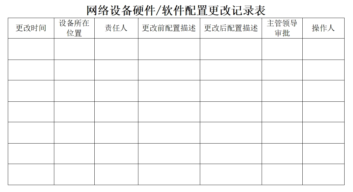 4.3.網(wǎng)絡(luò)改造、設(shè)備投入運(yùn)行、升級等等重大事項(xiàng)要明確進(jìn)行立項(xiàng)、審批、計(jì)劃、實(shí)施、測試、驗(yàn)收的流程進(jìn)行,同時(shí)流程的各個關(guān)鍵環(huán)節(jié)要輸出相應(yīng)的文檔,經(jīng)過相關(guān)領(lǐng)導(dǎo)的簽字確認(rèn)。